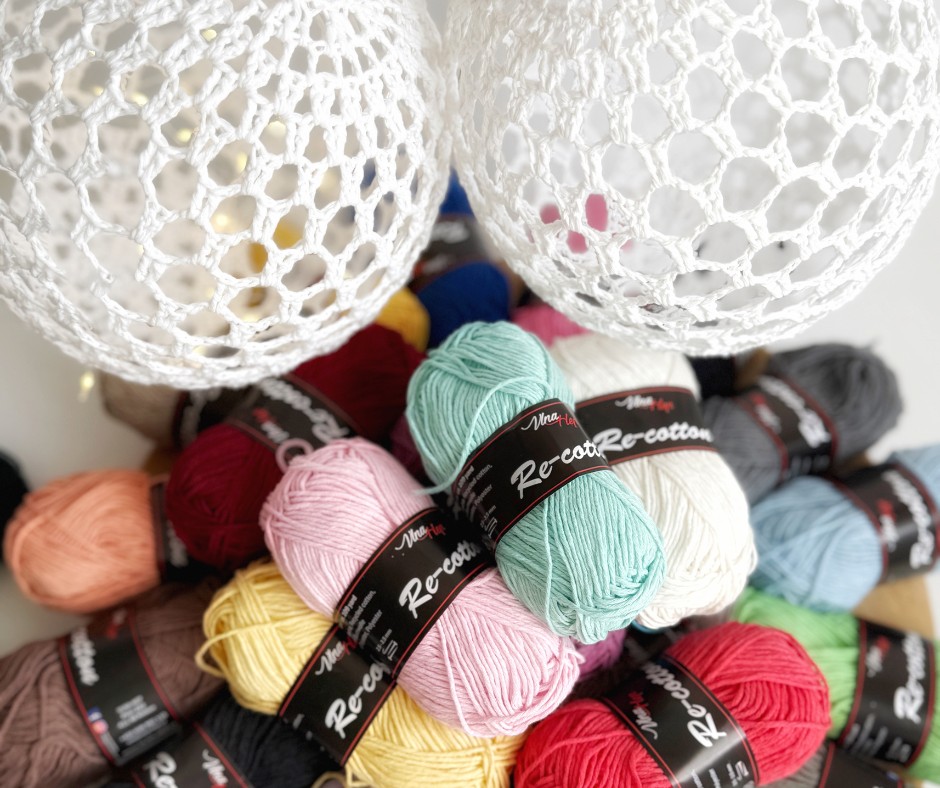 Co se dá z Re-Cotton uháčkovat? Z podobné příze jsem tvořila háčkovaný ubrus a nedávno také háčkovaný lampion Cotton, který najdete ve videonávodu zde. A víte, co jsem zjistila? Re-Cotton se skvěle škrobí a perfektně drží tvar! Takže je ideální třeba na naškrobený košík nebo dekorativní misku.