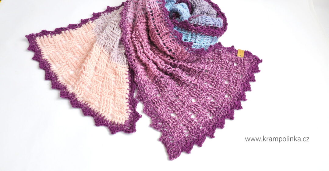 9. – řada xy: vzorek 3. – 8. řada opakujeme do „vypotřebování“ 12 barevných přechodů. Poslední dva barevné přechody si necháme na olem šály.
