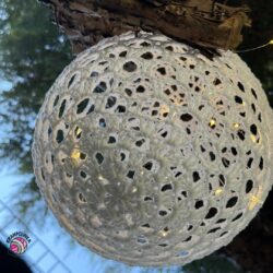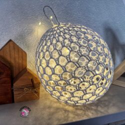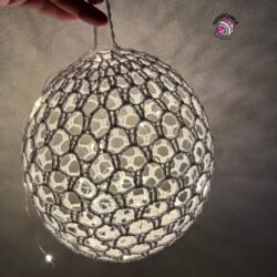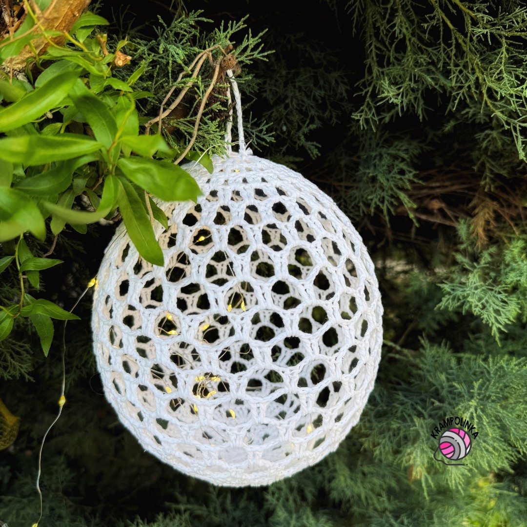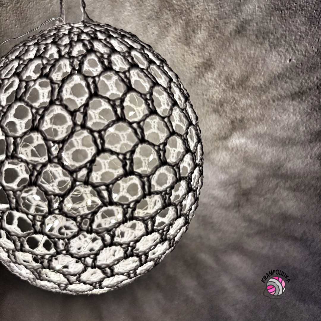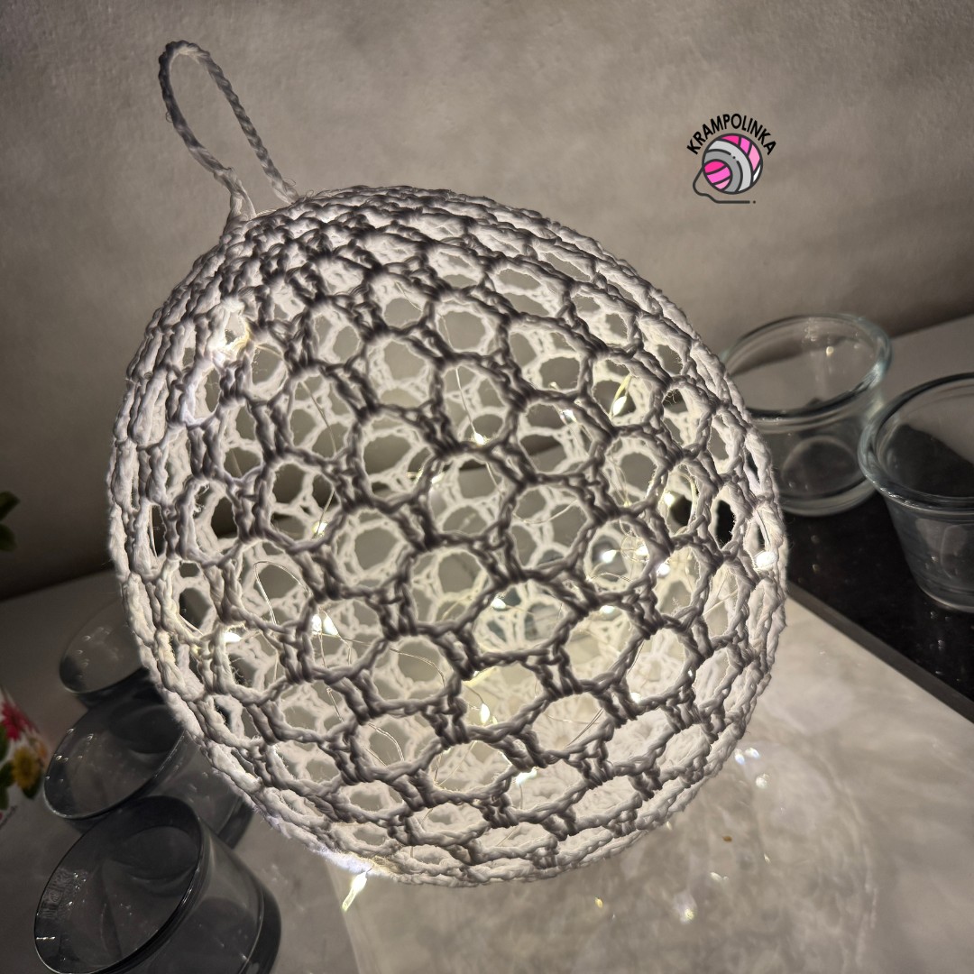 Pro svůj lampion jsem hledala přízi, která není příliš tenká ani tlustá a dá se dobře naškrobit. Základ tvoří kruh z klasického granny vzoru, na který navazuje jednoduchý vzorek z dlouhých sloupků a řetízkových ok. Ty směrem k vrcholu postupně ubíráme. Háčkujeme po řadách tam a zpět, přičemž každou řadu zakončíme ve středu obloučku. Na vrcholu si necháme otvor pro světélka – můžete použít LED řetěz nebo samostatná světýlka. Pokud necháte delší konec příze (který nenaškrobíte), snadno si z něj uháčkujete poutko na zavěšení.