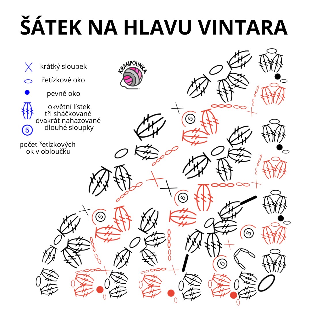 Ať se Vám šátek Vintara podaří a nosíte ho s radostí. Máte chuť ostatní inspirovat nebo sdílet zkušenosti s háčkováním šátku na hlavu? Fotečky můžete vkládat do FB skupinky Krampolinka. Na Instagramu pro pohodlné vyhledávání prosím používejte tag #satekvintara. Pokud mne označíte u svých výrobků dle mých návodů, můžu je přesdílet v Instastories pro inspiraci ostatním.