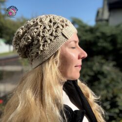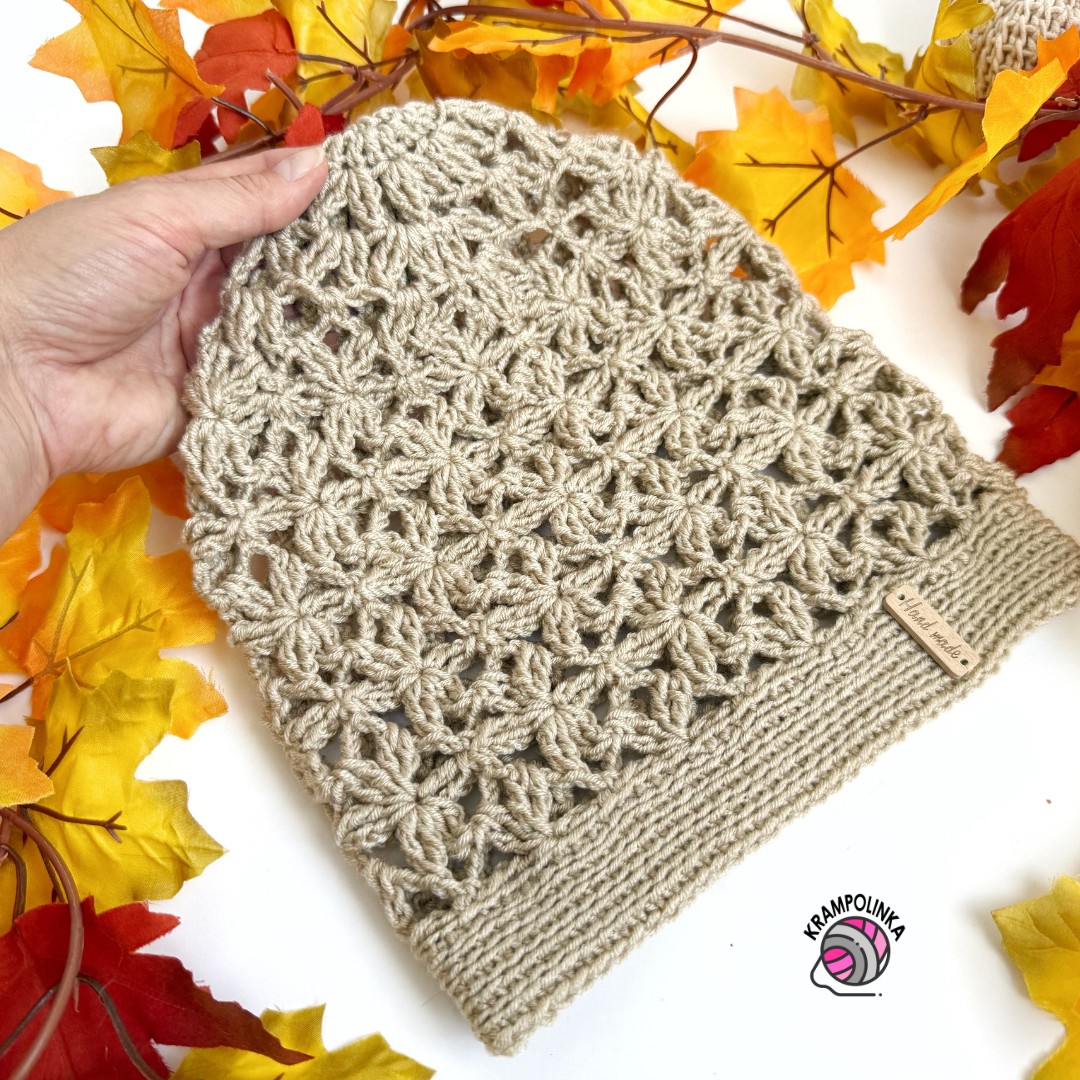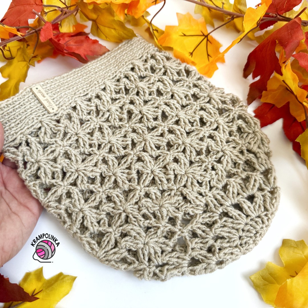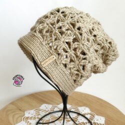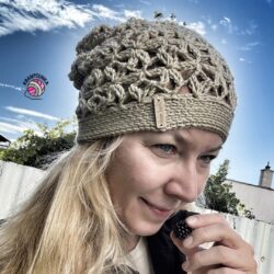 Na háčku jsem vyzkoušela kombinaci této síly příze se zjednodušeným kytičkovým vzorem z dvakrát nahazovaných dlouhých sloupků. Výsledkem je trendy krajková homeleska, která působí vzdušně, ale kolem uší krásně hřeje.
