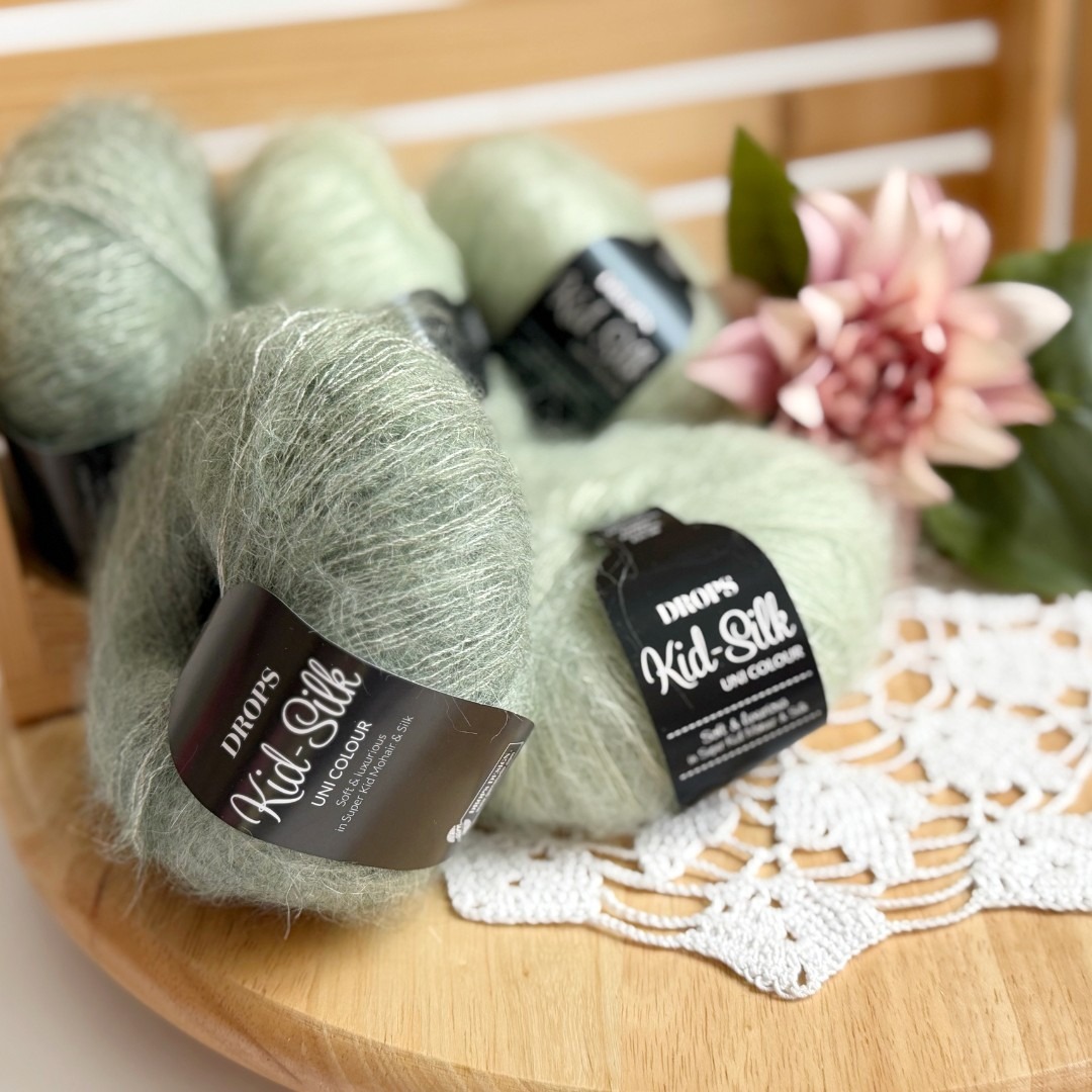 Příze DROPS Kid-Silk patří mezi materiály, které poznáte už při prvním doteku. Jedná se o jemnou směs 75 % mohéru a 25 % hedvábí, která vytváří extrémně lehký, nadýchaný a velmi elegantní vzhled. Díky svým vlastnostem je ideální pro projekty, které mají být vzdušné, jemné a přitom hřejivé. Skvěle se hodí například na lehké šály a šátky, vzdušné svetříky, krajkové projekty nebo jako příplet k dalšímu druhu příze.  Jedno klubíčko má návin 25 g / 210 m a mám vyzkoušeno, že z jednoho klubíčka uháčkuji panel cca 60×45 cm. Na celý svetřík by měla stačit 4 klubíčka, což je fantastických 100g. Na háčkování používám spíše větší háček. Svetřík je jako obláček a hodí se na háčkování oversize kousků a na vrstvení. Parádní výběr v barvičkách KID-SILK najdete zde Z podobného materiálu jsme si háčkovali úžasné bolérko na jaro Silk Mohair.