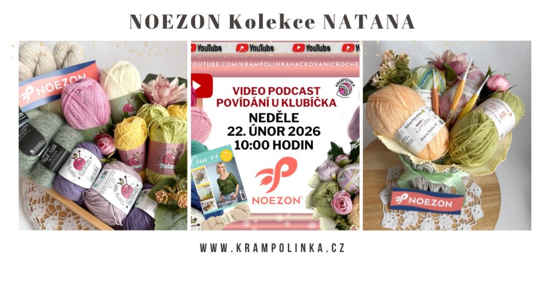 Tentokrát jsme se podívali na několik velmi zajímavých přízí – od luxusní směsi mohéru a hedvábí až po novou klubíčkovou kolekci NATANA – a ta mne překvapila nejvíc. Ti, kteří podcast Povídání u klubíčka sledují pravidelně ví, že si kromě klubíček ukazujeme i časopisy, knížky nebo vychytávky. V posledním vysílání jsme si třeba prozradili slevu 20%. Sledovat Krampolinku se prostě vyplatí. Slovenské tvořilky nakupují na NOEZON.sk a české tvořilky na NOEZON.cz.