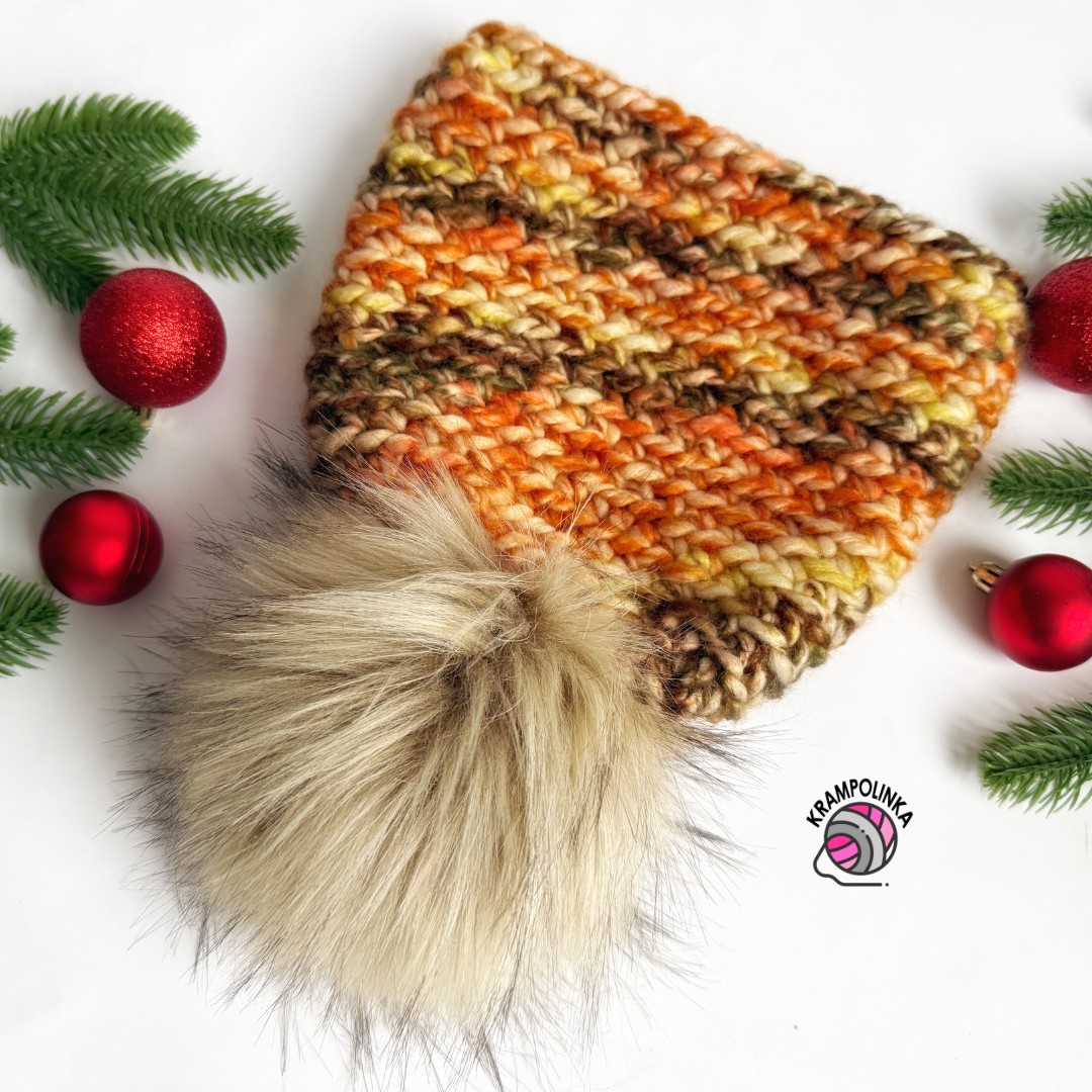 - Co se týče kulichu, tento střih je nejjednodušší typ čepice vůbec. Uháčkujeme základní řetízek podle obvodu hlavy. Dále háčkujeme tzv. dokola bez ukončení řad, takže kulich nemá žádný šev. Pro tento typ háčkování potřebujeme označovače pro označení začátku řady. Před dokončením v jedné řadě ujmeme. Těsně před dokončením háčkujeme pouze každý druhý sloupek a tím kulich krásně dotvarujeme. Zbylý otvor sešijeme a našijeme obrovskou bambuli, třeba od Bambulky výhodně.