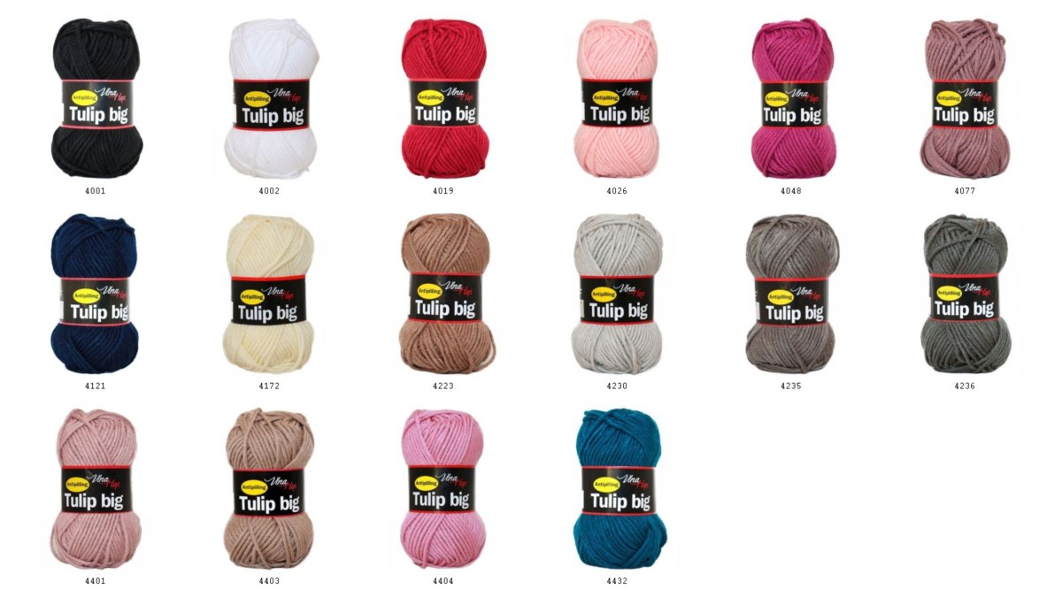 Když jsem od Vlna-Hep dostala poměrně objemný balíček a udělala k „tébéčku“ jak jí familiérně říkám, čili TB, čili Tulip Big, vstup ve skupince na facebookové síti (mrkněte na videa, fotky a vstupy ze dne 12. září, smetanový kulíšek KS véčka), rozpoutalo se poměrně velké nadšení, a to až takové, že mi přímo z Vlna-Hep volali druhý den v poledne, že jako dobrý, že děkují, ale že jim od rána zvoní telefony a všichni chtějí objednávat Tulip Big, a to dokonce i ze sousedního Slovenska. Problém byl v tom, že jsem dostala pouze vzorky na test a sklady Vlna-Hep ještě tou dobou zely prázdnotou. Vypuštění základní řady 16-ti barev bylo naplánováno až na půli října, což ovšem vůbec nevadí. Dočkali jsme se a to je hlavní a já doufám, že budete stejně nadšení, jako já.