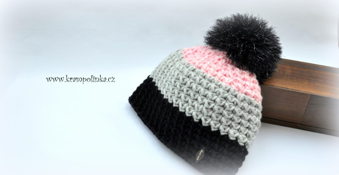 Náhrada N jedno volné ŘO za KS. Čepička je háčkovaná ze začátku po řadách a řady končí PO a začínají N, od třetí řady je háčkováno dokola.