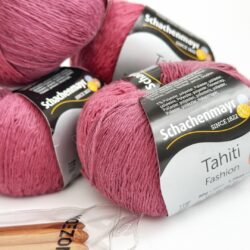 Jaká klubíčka na nás ve vysílání čekala? Novinka SCHACHENMAYR TAHITI, což je klubíčko 50g a návinem 280m. Tahiti je složením 99% bavlna a 1% polyesteru a má postupné barevné přechody. Tahiti je krásně tenoučká, kvalitní bavlna, která bude skvělá na letní halenky, šaty, topíky či tuniky. Úžasná bude i na šátky a letní plédy. Na šaty odhaduji spotřebu na 7 klubíček, na tílko velikost 40-42 pět klubek. Nádherné barvy Tahiti můžete vybírat zde.