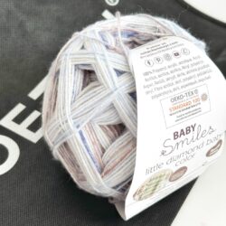 Další zajímavé klubíčko je SCHACHENMAYR Baby Smiles Little Diamond Baby Color. Little Diamond má naprosto nezvyklý tvar poplatný svému jménu. Klubko je navinuto do tvaru diamantu. Klubíčko má 150g a návin 555m, což je v přepočtu cca 100g/370m. Little Diamond je 100% jemný akryl, který má evropský certifikát OEKOTEX100, tj. příze je vhodná pro děti do tří let. Little Diamond se hodí na deky, dětské svetříky, capáčky či jarní čepičky. Z jednoho klubka lze uplést deku 50×70 cm. Na háčkovanou bych volila klubíčka minimálně dvě. Jedná se o limitovanou edici. Pokud bude ještě naskladněna, můžete pořídít zde.