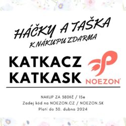 Výhodou NOEZON je rychlé doručení, zásilkovna za 49 Kč a prozákaznický přístup. Současně s klubíčky jsme si rozbalili dárkový kód KATKACZ, který lze použít na NEOZON.cz a kód KATKASK pro NOEZON.sk. Stačí do 30. dubna 2024 nakoupit nad 380 Kč nebo 15 euro a k nákupu získáte praktickou látkovou černou tašku a sadu dřevěných háčků ZDARMA.