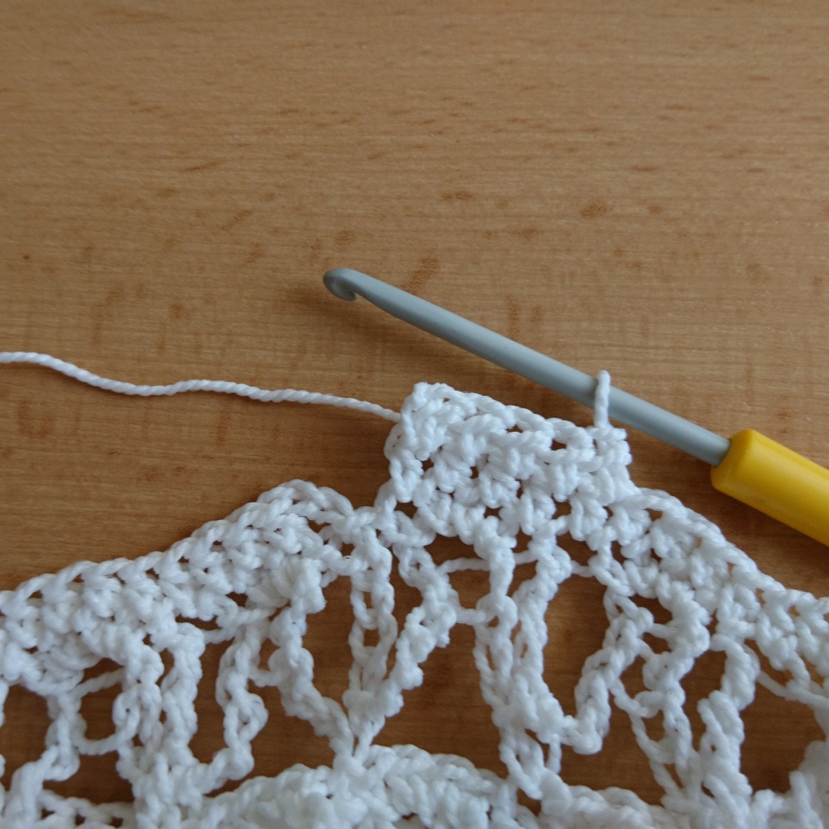 21. řada: N za PDS, dále háčkujeme PDS do KS a PDS do 3DS. Uháčkujeme 39 PDS, a poté 5 x sháčkujeme po dvou PDS a pokračujeme v háčkování PDS do konce řady, na konci řady práci otočíme a háčkujeme zpět. V této řadě máme 85 PDS.