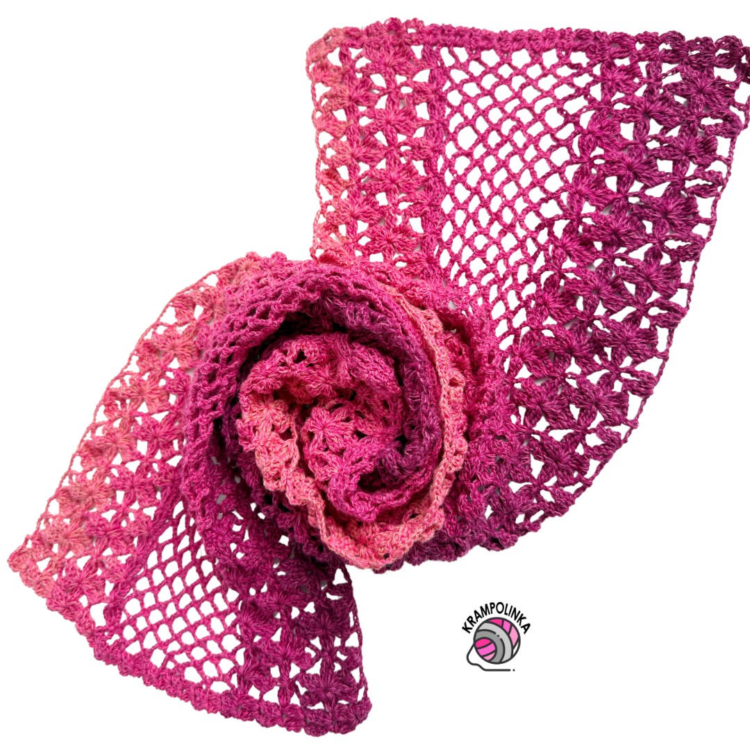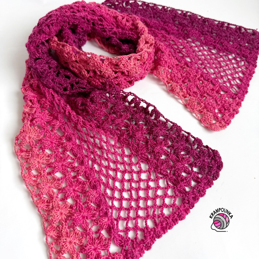 - Pokud uháčkujete více řad kytiček a více řad síťového vzoru a zvolíme nejdelší variantu šály, budete mít krásný široký vzdušný letní pléd na šaty nebo na plavky. Jak šálu vyblokovat najdete v tomto krátkém videu.