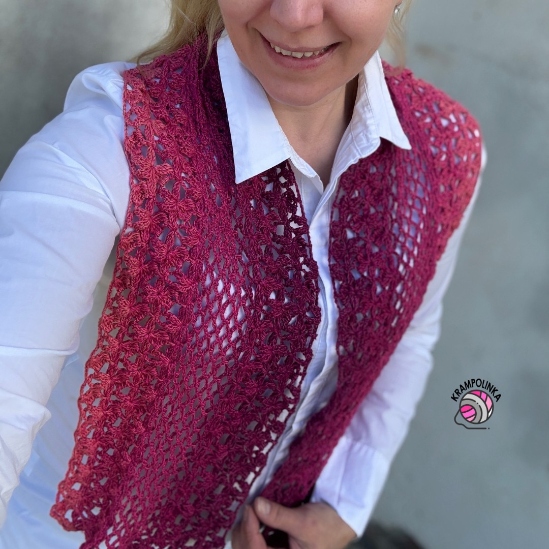 - Krátká šála měří 124cm, ale můžete si uháčkovat jak dlouhou potřebujete