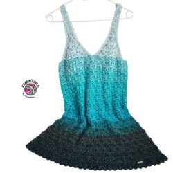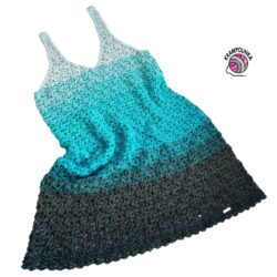 Přiměřujte a zkoušejte, především kvůli rozšiřování a tvarování šatů na postavu. Háčkování jde velmi rychle, takže jsou šaty brzy hotové.