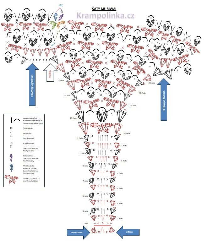 Pozn. Jak ukončovat řady najdete barevně označeno v nákresu vzoru.