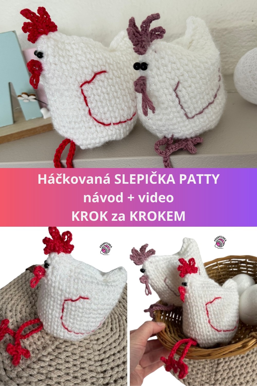 Ať se vám Slepička Patty podaří a udělá Vám radost. Pokud máte chuť inspirovat ostatní nebo sdílet své zkušenosti s háčkováním či stylingem slepičky, budu moc ráda za vaše fotografie. ? Fotečky vkládejte prosím do SKUPINKY KRAMPOLINKA na FB. Na Instagramu pro pohodlné vyhledávání prosím používejte tag #slepickapatty. Pokud mne označíte u výrobků dle mých návodů, můžu je přesdílet v Instastories pro inspiraci ostatním..