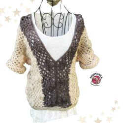 Byla jsem zvědavá a zajímalo mne, jak bude vypadat Tulip na krajkovém – dírkovém vzdušném vzoru, který se běžně používá u letních přízí. A myslím, že to dopadlo báječně. Svetřík je rychle hotový, tak akorát hřejivý. Lze jej vyrobit jako vestičku nebo lehký svetřík na nátělník, tričko nebo rolák. Svetřík unosíme celoročně. Sluší mu volnější a ležérnější střih. Aby si výrobek hezky sedl, doporučuji svetřík přežehlit přes ručníik.