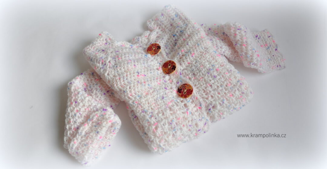 Tak jsem malé uháčkovala svetřík na první den do školky. Přízi YarnArt Twinkle Baby si vybrala sama. Klubíčko je plné třpytek a růžové, takže mne její volba vůbec nepřekvapila.