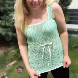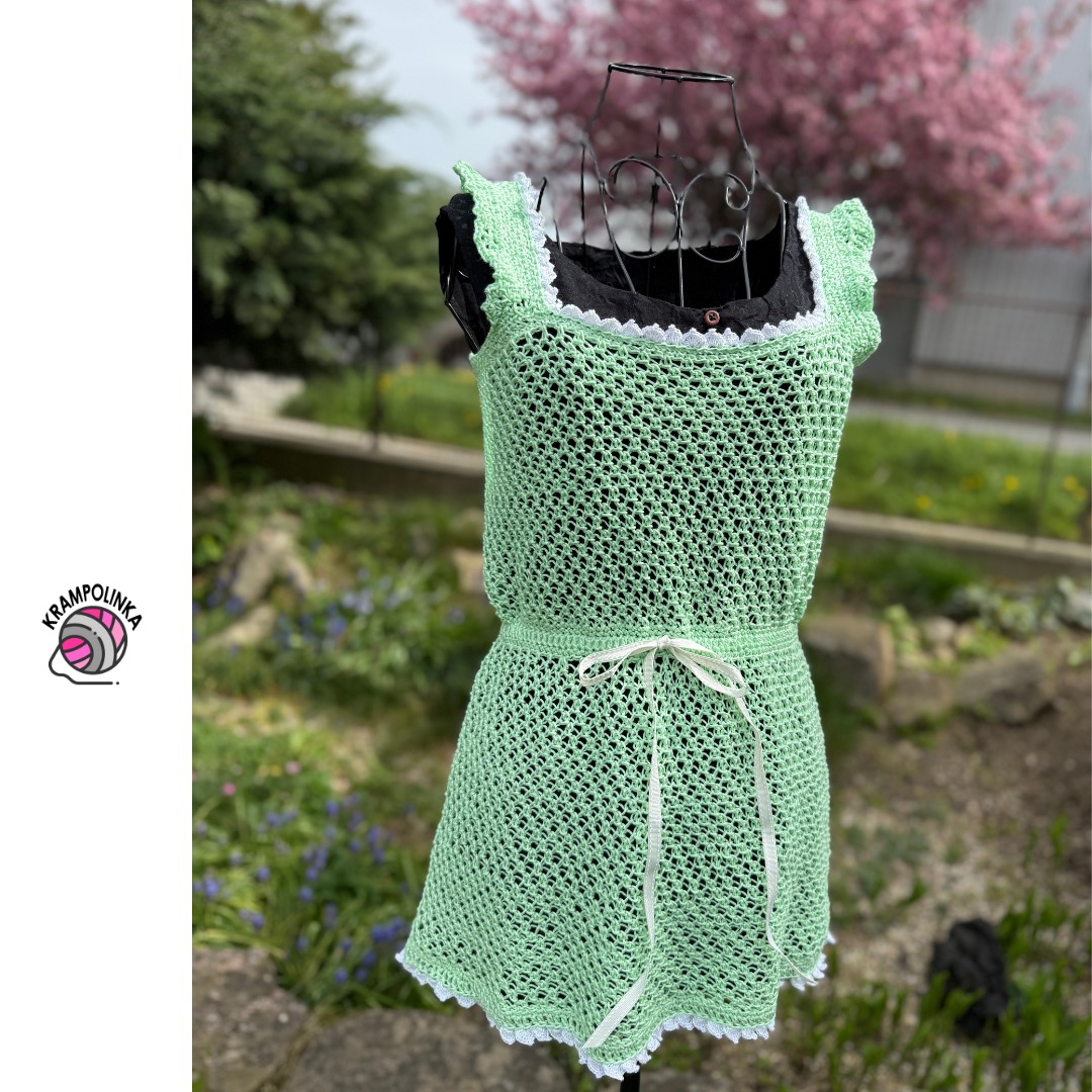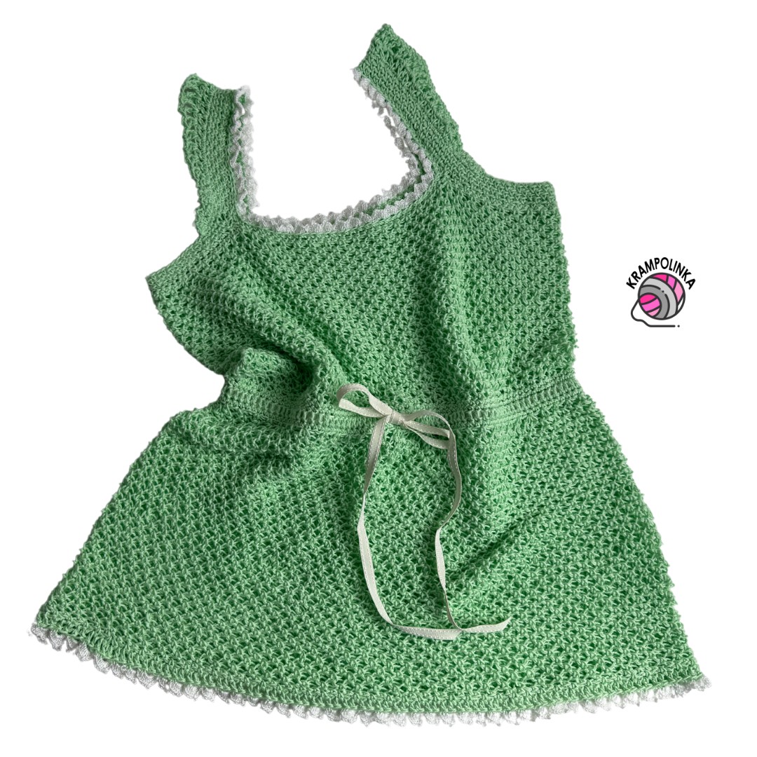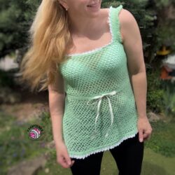 - TIP: Živůtek háčkujeme spíše kratší. Vlastní váhou se top prověsí a živůtek povolí. Vzorek má fantasticky malou spotřebu a výrobek je lehoučký.