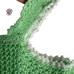 2. řada: navážeme tenkou přízi, háčkujeme za zadní nitku a háčkujeme 2 ŘO místo prvního DS. Háčkujeme vzorek za zadní nitku 4DS-pikotka-4DS, KS do následujícího očka. Opakujeme vzor do konce řady. Přízi ukončíme.