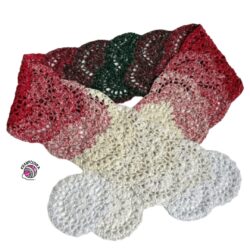 Duhová klubíčka Klubka od Lary jsou různá duhová klubíčka, třínitky a čtyřnitky, 50% akryl a50% bavlna, které pro Vás motá paní Radka buď podle vlastní fantazie nebo na Vaše přání. Letos jsme se domluvily, že umotá duhová klubíčka ve vánočních barvách a já z jednoho vyrobím vánoční ubrus. Vznikla duhovka s názvem Vánoční překvapení I., 110g/500m, třínitka s lurexem. Klubíčko začíná bílou barvou a končí bílou barvou, což je skvělé na háčkované podlouhlé ubrusy, které se háčkují po řadách tam a zpět.