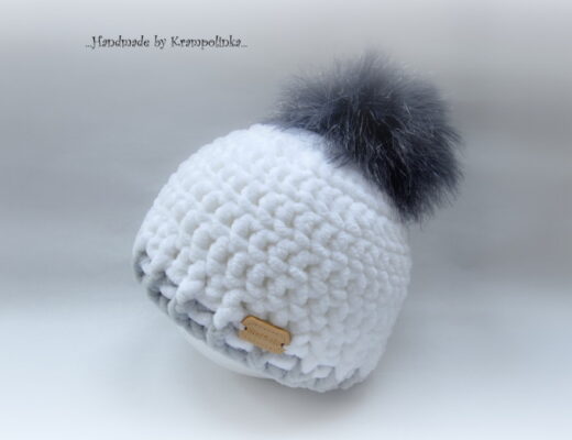 Co se týče vzoru jedná se o kombinaci předních reliéfních dlouhých sloupků, křížených dlouhých sloupků, krátkých sloupků a předních reliéfních dvakrát nahazovaných sloupků. Jestli jste se ještě nezamotali, tak to mám radost. Pro rozšiřování je důležitá čtvrtá řada, ve které – pokud uháčkujete méně reliéfních sloupců docílíte menší velikosti. Naopak pro větší velikost musíte v této řadě vyměnit křížené dlouhé sloupky za obyčejný dlouhý sloupek a rovnoměrně „vmáčknout“ ještě jeden, maximálně dva sloupce. Čepice by se totiž následně mohla vlnit, což nechceme.